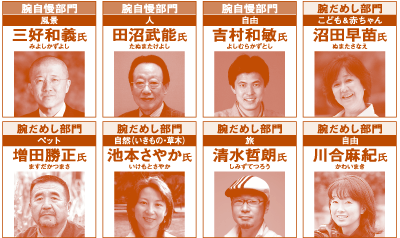 腕だめし部門 こども&赤ちゃん:沼田早苗氏、ペット:増田勝正氏、自然(いきもの・草木):池本さやか氏、旅:清水哲朗氏、自由:川合麻紀氏