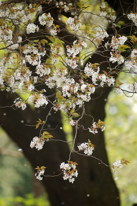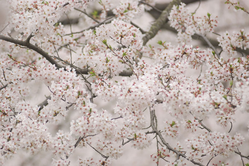 低い枝に咲いている花なので、近寄って撮ることができた。天気は明るい曇りの午後。一度一番上の桜にピントを合わせ、シャッターを半押しにしたままフレーミングし直して撮った。