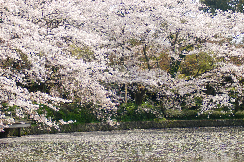 咲き誇る桜と池の上に散る桜、異なる姿を撮る
