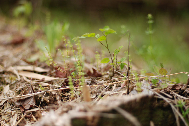 新芽のような細かい対象は、近づいて望遠とマクロモードで撮るときはっきり写る。地上約40センチの低い位置から撮ると、新芽が伸びていく力強さも表現できる。