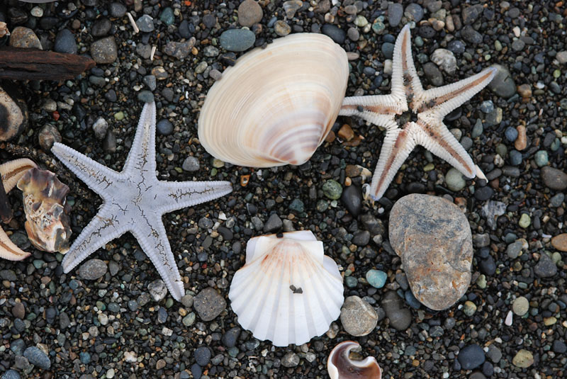 空の色が映り込んだ波打ち際を 大きくフレーミングする