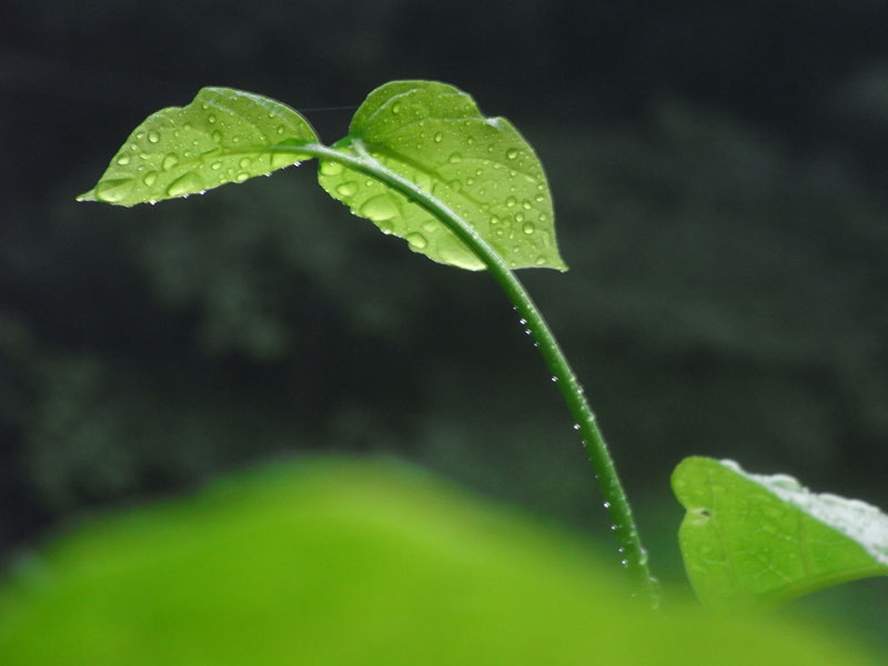 暗い背景と逆光で水滴をひきたたせる