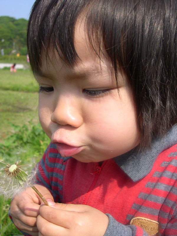 子どもの表情が一番強調されるのが、近距離からの「アップ」撮影。大きな口を開けて笑っている表情や、口を尖らせている表情まで鮮明に写る。近距離からの撮影はマクロモードを使う。肌の質をリアルに写すことができる。