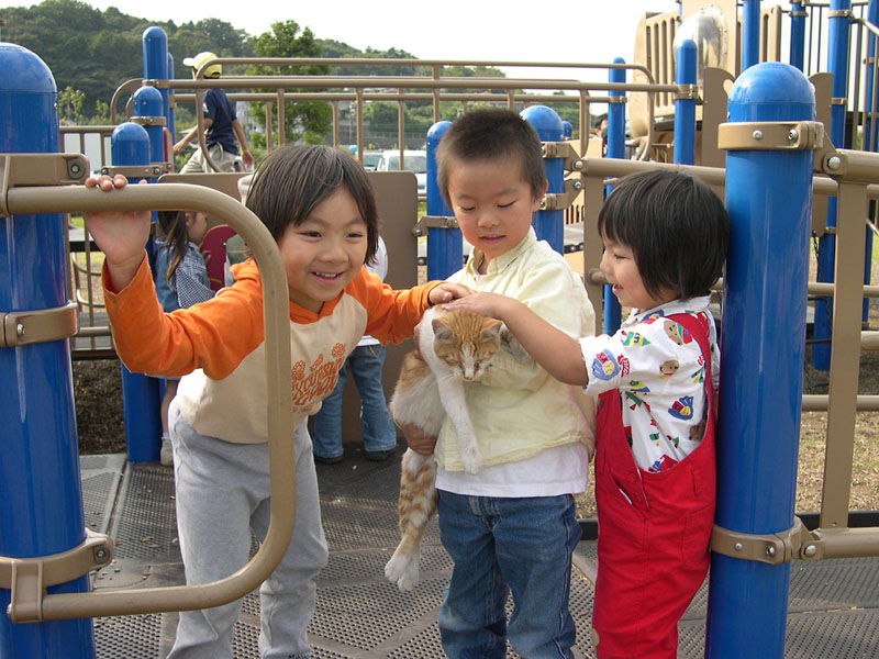 子ども同士で遊んでいるところや、動物とじゃれあっているところは、カメラ目線にこだわらず、自然な姿を撮影する。撮りたいアングルが違うときは、自分が移動するとよい。「こっちを向いて」と声をかけてしまうと、楽しそうに遊んでいた表情が、あっという間に消えてしまうので、カメラの存在を意識させず撮影をする。