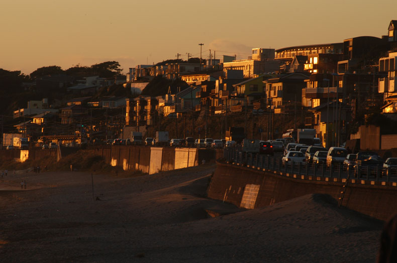 夕陽に染まる街並みを斜光で撮影したので、陰影がつき街並みの立体感を表現できた。また、夕日の反射と影が作り出すコントラストの強さによりドラマチックなイメージを作り出せた。
