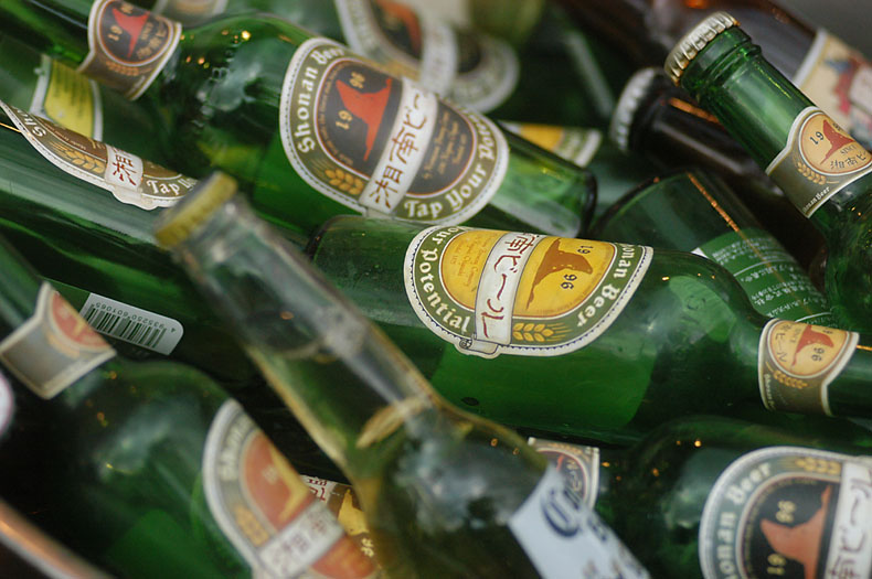 木箱に無造作につまれていた瓶の山を撮影。木箱を画面から切ることで、瓶が画面外まで並んでるように感じされる効果が生まれた。