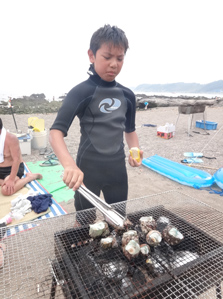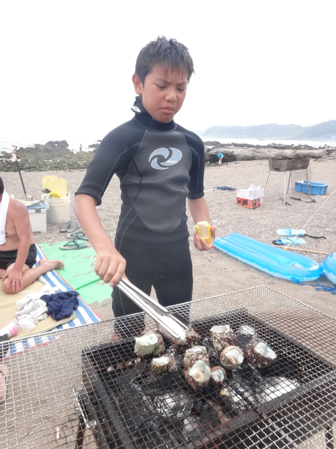 屋外でのバーベキューはいつもと違うお食事で子供たちにとって楽しいものです。何しろ焼くだけなので子供にもお手伝いを頼みやすく子供たちもけっこう喜んでやってくれます。バーベキューで焼いているところを撮るときはやはりバーベキューセットが入るようにフレーミングして撮りましょう。何人かでバーベキューセットを取り囲んでいるところなら横位置でもまとめやすいですが、一人で焼いているときなら作例1のように縦位置でフレーミングすると落ち着きます。広角で近くから撮ることと画面下はバーベキューセットまで入るようにフレーミングするのがおすすめです。望遠で遠くからアップにするより広角で近くから撮ったほうが何を焼いているのかがわかりやすくなるので臨場感が出ます