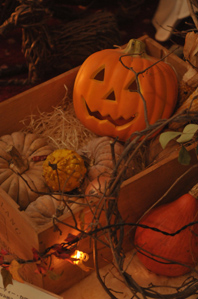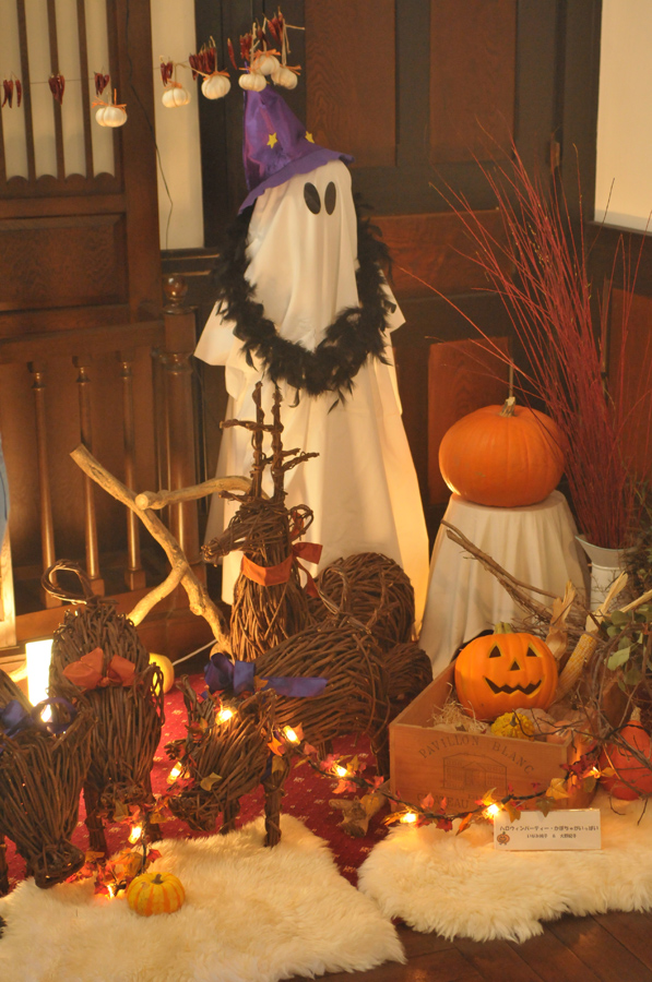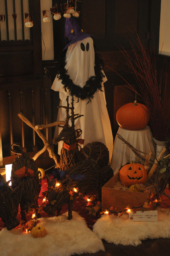 もちろん状況によって違いますが、ハロウィンの写真を撮るときは「ここはちょっと暗めに撮っておこう」と思うことが多いと感じています。ハロウィンのイメージとしてよくモチーフになっているのはもちろん一番はカボチャですがそのほかにお化け、魔法使いなどもよく使われています。なんとなく全体的に夜のイメージで、魔法使い関連からだと思いますが蜘蛛の巣とかフクロウとか黒猫など、ちょっと暗めのイメージが合う飾り付けが多いと思います。