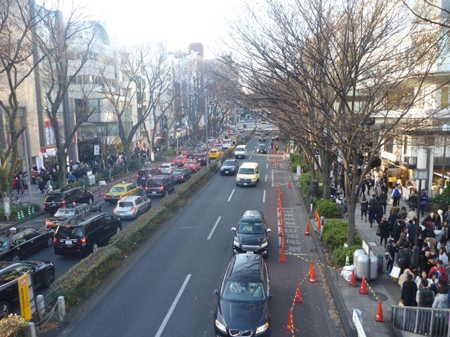 クリスマスの買い物でしょうか?歩くのも憚れる程ケヤキ並木は雑踏に包まれています。
