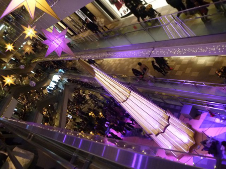 表参道ヒルズの通路は狭く肩が触れあう程でツリー撮影に身を乗り出す方ありで警備員も大忙しでした。