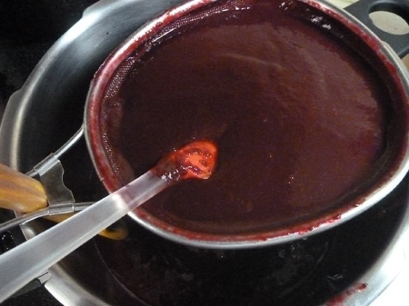 金笊で裏漉しをして種を分離します。結構大変です。種を気にしなければ漉す作業を割愛できます。でも舌触り悪しです。