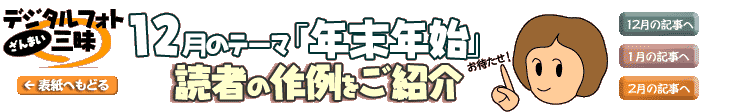 ここでは、2001年12月1日〜1月31日に読者の方々からお送りいただいた作品の中から「フォト美賞」に輝いた作品を、12月のテーマ「年末年始」の作例として掲載しています。