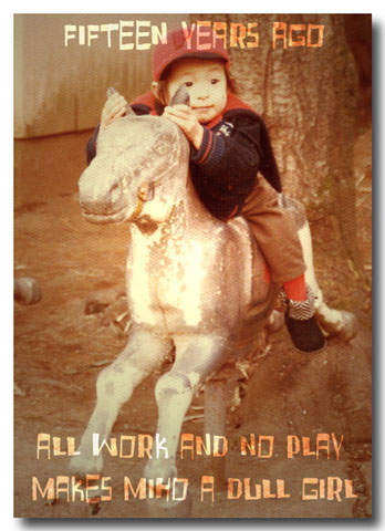 ●コメント 「馬に乗った15年前の写真を見つけ年賀状に採用」