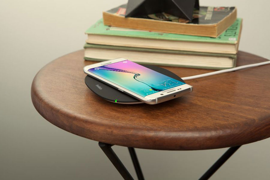 Qi認証を受けた送電コイルを搭載、充電パッドにスマートフォンを置くだけで、電磁誘導により充電が開始します。