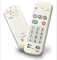 デジタルカメラと携帯電話を別々に使い分けるなら、単機能の携帯電話として最もシンプルなのが、この京セラ製の通話専用モデル。カメラ機能なし、メール機能なし、液晶ディスプレーなしで、あるのは数字ボタンと受話器の機能だけという、家庭用電話の子機のようなスタイルです。