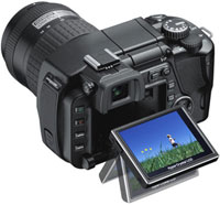 通常の撮影時に使用する液晶表示では、専用のCCDでファインダー像をそのままモニターに映し出す方式を採用し、撮影用の画像センサーと光学系を分けているので動画撮影はできませんが、フィルムカメラの使用経験がないユーザー層に、一眼レフタイプをアピールする上で、一定の効果は期待できそうです。