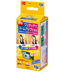 内蔵フィルムに、新開発の高感度ISO800フィルムを採用したほか、パッケージデザインも一新。シリーズは全5機種で、その中には、2枚構成のレンズを搭載した高級タイプや、2段階切替ズーム付タイプ(記事横にある写真の製品)、そのまま水中撮影が可能な15m防水タイプもあり、目的に応じて使い分けることができます。