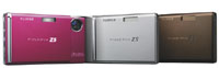 ピンク色のボディで人気を集めた、スリムデジタルカメラ「FinePix Z3」の後を継ぐニューモデル。今度は、ちょっと違うカラーバリエーションで、「大人かわいい系」の3色を揃えて新発売となりました。