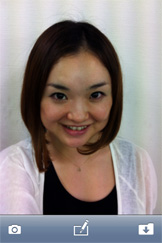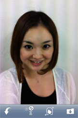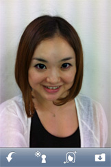 満足のいく写真が撮れたら、編集ボタンをタップして、より美しくなるように写真をアレンジ。画像下部の右から2番目にある女性の顔マークをタップすると、美顔エフェクトがONになります。左の画像は美顔エフェクトをかけたものです。肌の質感が変わってシャープな印象になりましたよね? さらに右画像では、明るさ補正(左から2番目の人マーク)をONにして見ました。髪の毛の色や肌の色など、全体的に明るくなって、さらにキュートに仕上がりました!