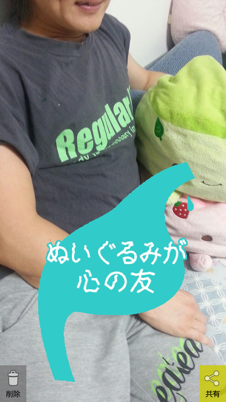 撮影が終わると、相手のお腹の中が丸見えに!「ぬいぐるみが心の友」「最近の女の人っておっかないなぁ…」「いつか潰してやるっ」「お前おごる価値ナシ!」「女は顔!」「ラクして儲けたい!」「あ~イライラする!」「お前生理的にムリ!」「けっきょく身を助けるのはお金か…」などの隠された本音が次々と暴かれてしまいます。きゃー!怖いアプリですね!家族やお友達の意外な本音があらわになったら、[共有]メニューで他の人にも教えてあげてください。画面右下の[共有]をタップすると、共有できるアプリ一覧が表示されます。共有先のアプリをタップしてくださいね。画像を保存する場合は、[保存]をタップしましょう。