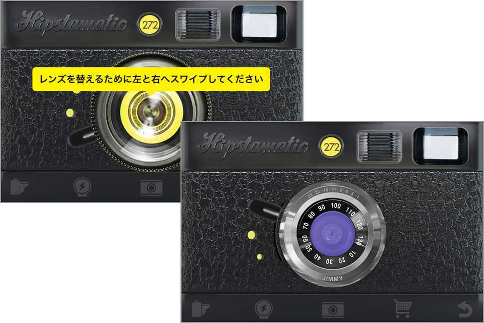 「スマートフォンのカメラアプリは何か物足りない……」と感じているカメラファンの方におすすめしたいのが、見た目も操作も本物のようなカメラアプリ「Hipstamatic」です。「Hipstamatic」は、本物のカメラのようなインターフェイスが魅力的。実際にカメラを構えているような気持ちになれるんです。また、レンズ・フィルム・フラッシュを変えることで、いろいろな組み合わせによる写真を撮ることができます!
