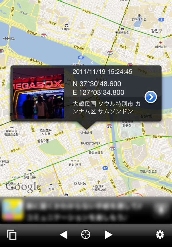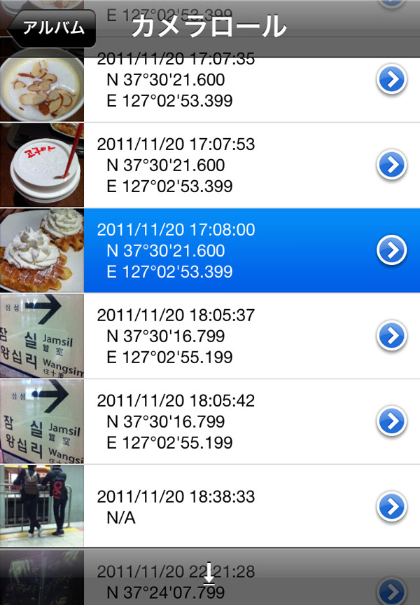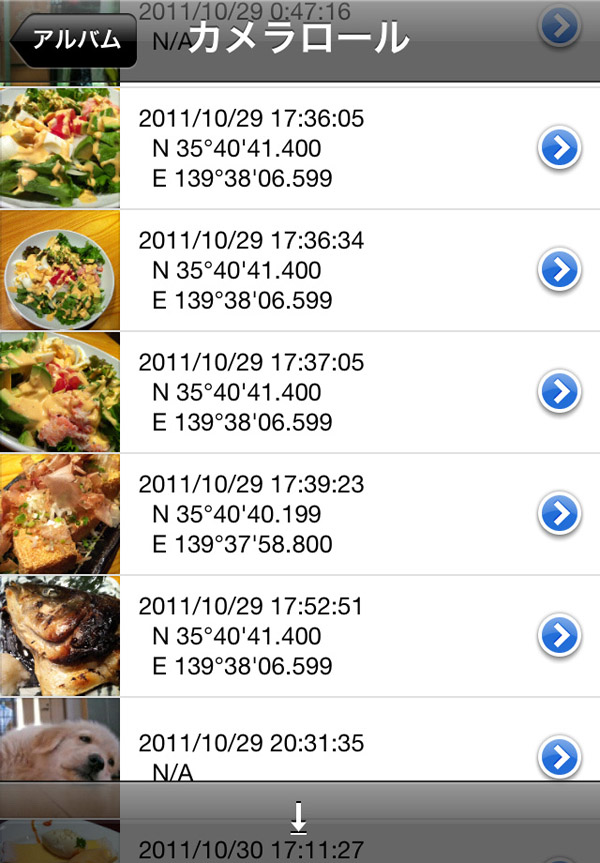 カメラの“位置情報サービス”をONにしておけば、ジオタグ(写真データに付加される、緯度・経度などの追加情報)が埋め込まれている写真の場所を、地図上に表示できちゃうアプリです。「あれ…この料理を食べたお店、どこだったっけ?」なんてときでも、このアプリがあれば、すぐに場所を表示することができますよね。便利です。