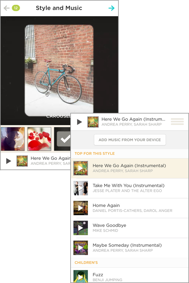 写真の雰囲気に合わせて、スタイルと曲を選択!