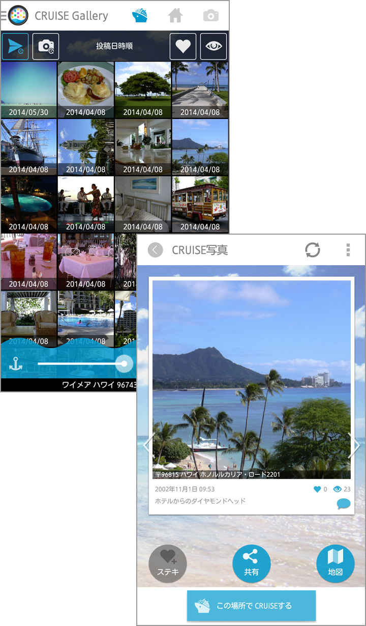 この夏、お出かけする予定の場所はどんなところかな?と思ったら、ぜひ「CRUISE~フォトナビゲーション」を開いてチェックしてみてください。そしてお出かけ後には、撮影した楽しい思い出の写真を投稿して、他のユーザーに自慢しちゃいましょう♪