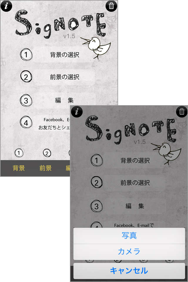 紙に描いた絵や文字を写真の上に合成して、味わいのある画像を作れるアプリ!「SigNote」