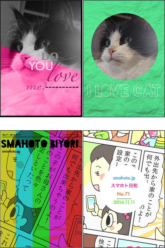 「Phoster」のテンプレートとフィルターの組み合わせはとても多いので、アイディア次第でさまざまな画像が作れます!ポスターやグリーティングカード、招待状など、オシャレな組み合わせを探していろいろ作ってみてくださいね♪