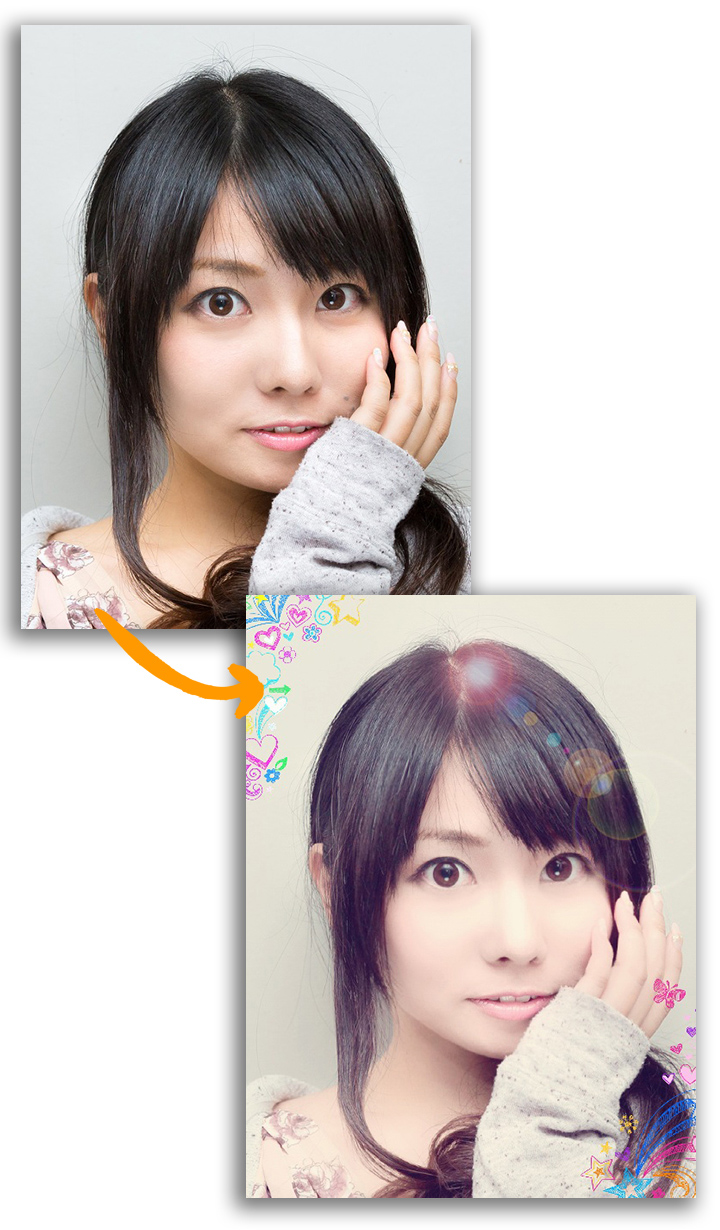 [輪郭くっきり]では、輪郭に少し影をつけて、輪郭をくっきり目立たせることができます。