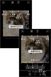 画面右下のボタンをタップすると、フィルターの透明度を調整したり、写真全体にぼかしを入れることができます。