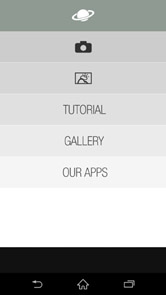 それでは、惑星写真を作ってみましょう!その場で撮影した写真を使うときは[カメラボタン]をタップしてカメラを起動しましょう。スマートフォンに保存されている写真を選ぶときは、その下の[ギャラリーボタン]をタップします。