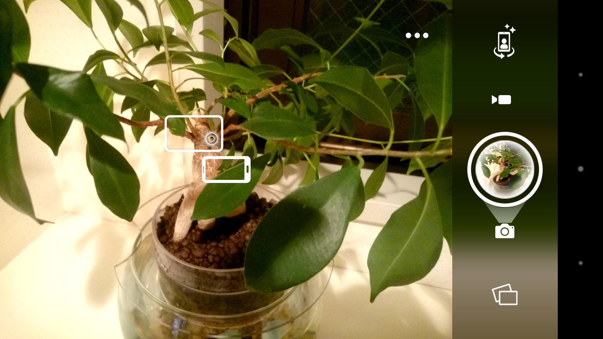 現在の焦点(ピント)の位置はスマホアイコンで表示されるので、焦点ボックスにスマホアイコンが重なるように、スマートフォンを動かしましょう。例えば、焦点ボックスが右上にあったら、スマートフォンを右上にずらします。二つの枠が綺麗に重なると、親指のOKマークが表示されます。フォーカスも自動的に行ってくれるので、あとは撮影するだけ!