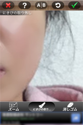 このアプリが本領を発揮するのは、人物写真です。「皮膚」をタップすると、顔痩せ・にきび消し・美白・チークカラー・口紅の加工ができちゃいます。画像は、にきび消し加工前と後なんですけど、肌の質感がぜんぜん違うと思いません!? 修正したい箇所を指でなぞっていくだけで、こんなに美肌になっちゃうんです。顔の輪郭が気になる方は、顔痩せ機能をタップして、余分な肉部分を指でなぞるとシャープなフェイスラインを実現することができますよ。