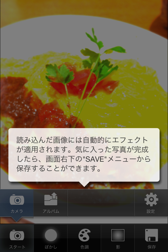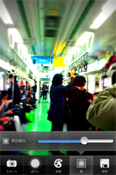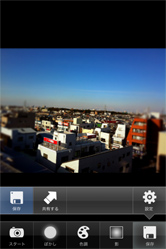 撮影したばかりの写真やカメラフォルダに保存されている写真を、ミニチュア風のおしゃれ写真に加工できちゃうアプリです。撮った写真を取り込むと、自動的にある程度のトイカメラ風エフェクトをかけてくれます。あとは下段の「ぼかし」「色調」「影」で、お好みに加工・調整すれば、あっという間に自分好みのかわいい写真ができあがりますよ!