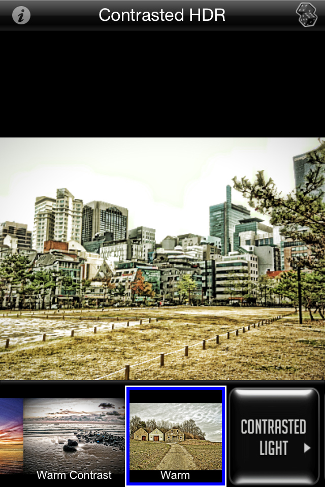 お次は景色で試してみました。画像を選んでこのアプリに取り込むだけで、ある程度のHDR加工をしてくれます。左下に表示される「Style」アイコンをタップすると、様々なHDR加工のプレビューを見ることができるので、効果によって写真の印象がガラりと変わって面白いですよ。画像右がHDR加工済みの写真です。“Warm”という、ちょっと温かみのある加工をしてみたのですが、絵みたいな仕上がりでオシャレですよね!