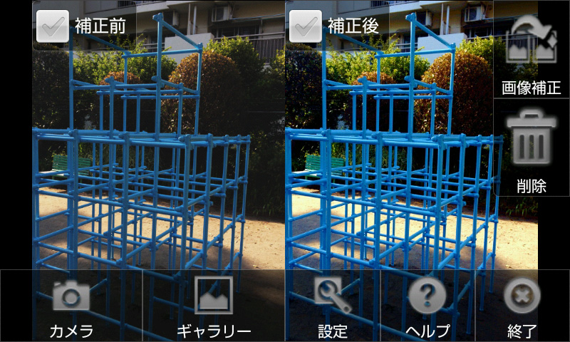 「きれいカメラ」に細かい設定はありません。写真を補正する手順は、写真を表示させる→[画像補正]ボタンをタッチする、の2つだけ。こんなに操作がかんたんな写真補正アプリは、なかなかありません。細かな設定や編集が苦手な方にも、使いやすいアプリですね。ぜひ使ってみてください。