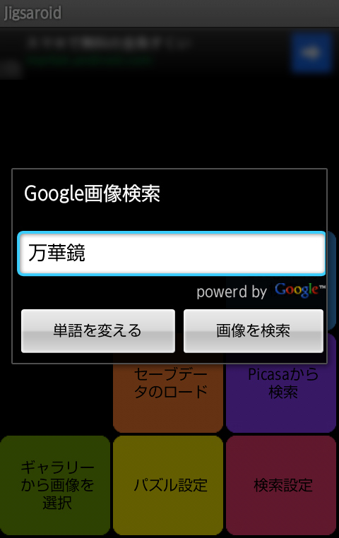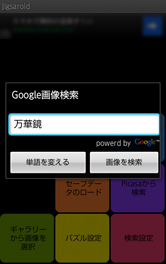 SDカードに保存されている写真やインターネットから検索した画像からジグソーパズルを作ることができるアプリ。