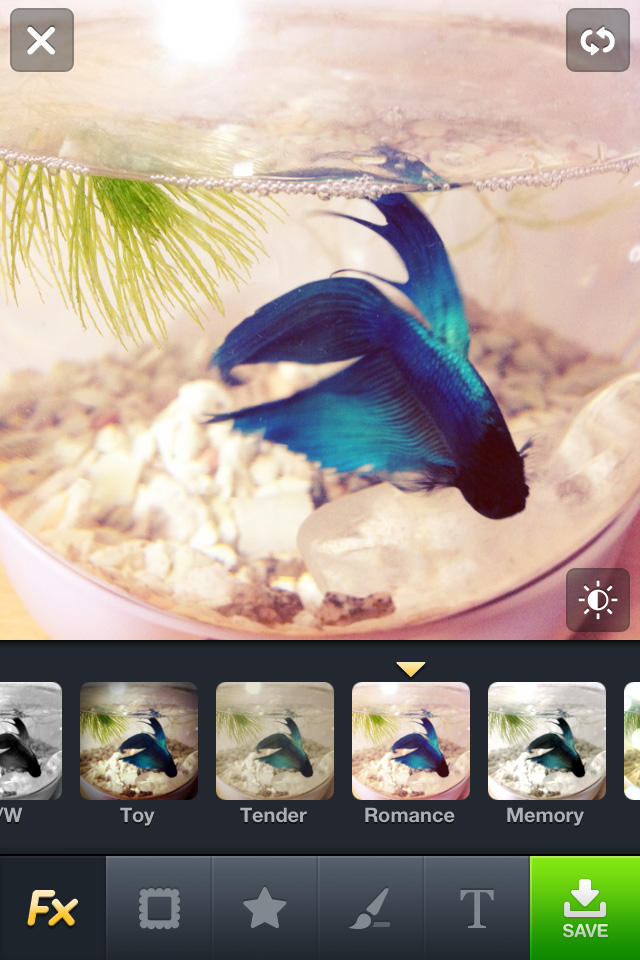 「LINE camera」は、無料で通話&メールし放題のアプリ「LINE」の公式のフォトアプリ。フィルター・フレーム・手書き文字などの写真加工はもちろん、「LINE」でおなじみのキャラスタンプを使ったデコもできちゃうスグレモノです。早速使ってみましょう。アプリを起動すると、すぐに撮影画面が表示されます。保存されている写真を選んで加工することもできます。画面下部中央のカメラボタンをタップで撮影できます。画面上部のメニューでは、1:1と3:4の選択、インカメラへの切り替え、フラッシュ、タイマー、枠の表示ができます。撮影が完了したら加工画面へ。画面下部の[Fx]では、色調の補正の他、20種類のフィルターから好きなテイストに加工することができます。