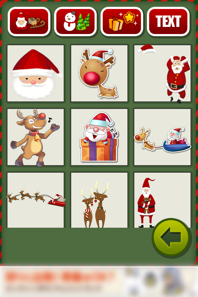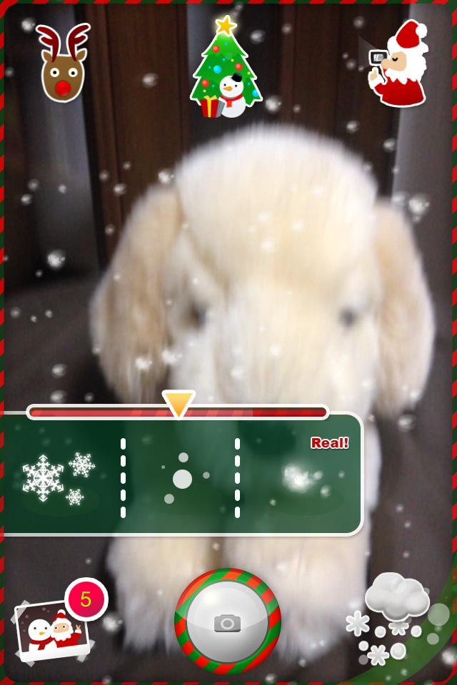 ツリーやサンタクロースなどのクリスマスアイテムで写真をデコレーションできるアプリ。
