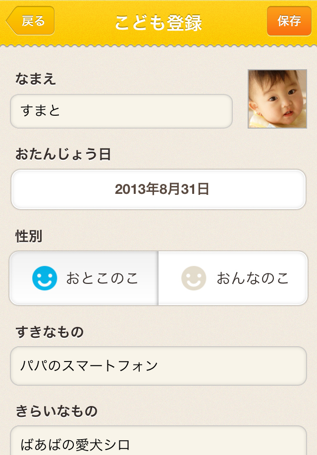 かわいい赤ちゃんや子どもの成長を写真とともに簡単に記録し、家族で共有ができるアプリ。