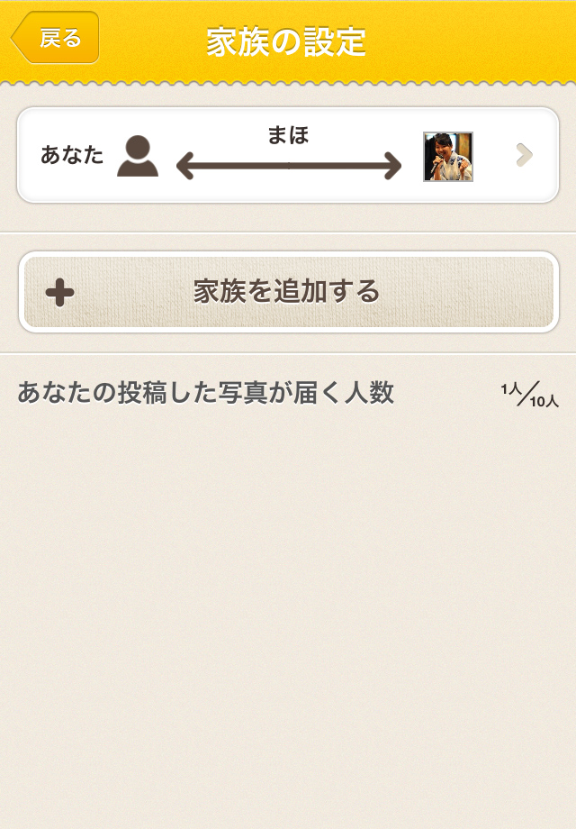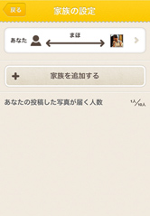 今回はiPhone版の画面でご説明しますね。アプリの利用にはユーザー登録が必要です。Facebookアカウントまたはメールアドレスで登録しましょう。メールアドレス・パスワード・子どもとの関係(ママ・パパ・ばあば・じいじ・親戚」)を登録して、ユーザー登録完了。続いて、子どもの情報を設定しましょう。写真・なまえ・おたんじょう日・性別を登録してください。1人目の入力が終わったら、2人、3人と続けて登録ができます。次に、投稿を見せたい家族の設定をします。画面下部の[マイページ]をタップすると、[myページ]メニューが表示されます。[投稿を見せたい家族]をタップすると、[家族の設定]画面が表示されます。[家族を追加する]をタップして、メールアドレスを入力後、右上の[申請]ボタンを押しましょう。追加された方には、『写真の共有申請が届いています』というメールが送られてきますので、アプリに登録・ログインして、共有申請を承認すると、投稿を共有できるようになります。