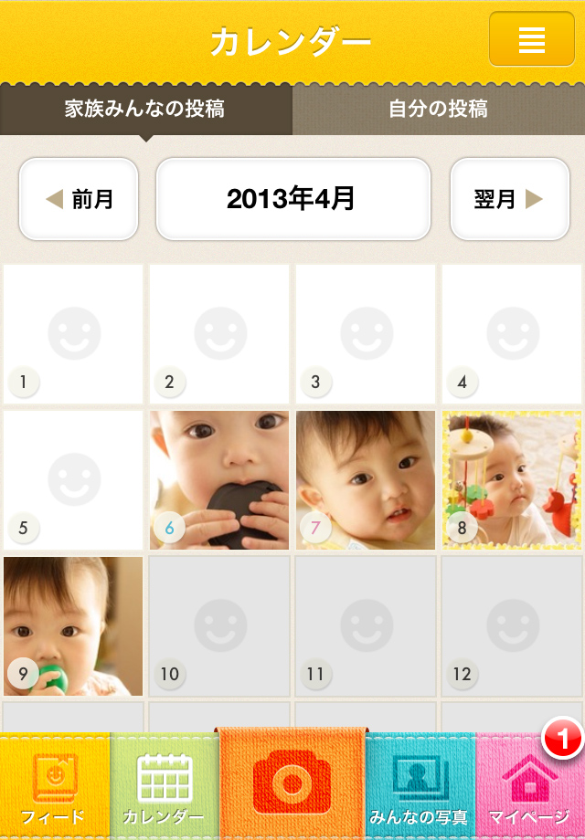 子どもの写真や動画をカレンダー形式に投稿して、家族で共有できるアプリ!「nicori」