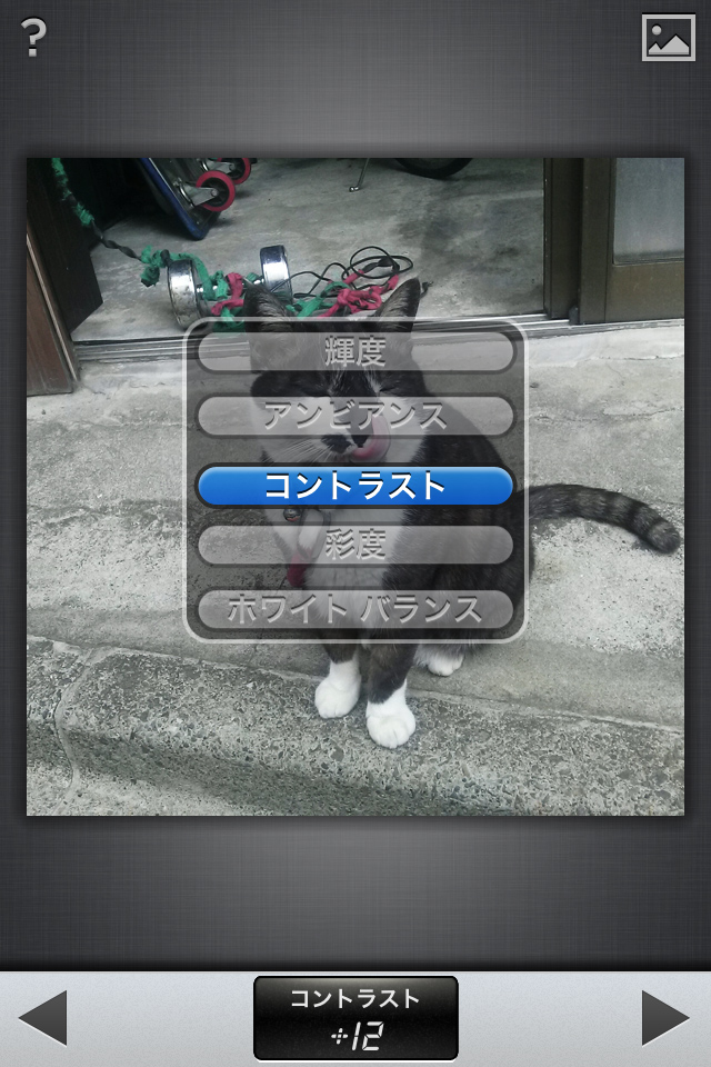 スワイプ操作で補正項目の設定や微調整などの写真加工が簡単にできる、本格的なカメラアプリ。
