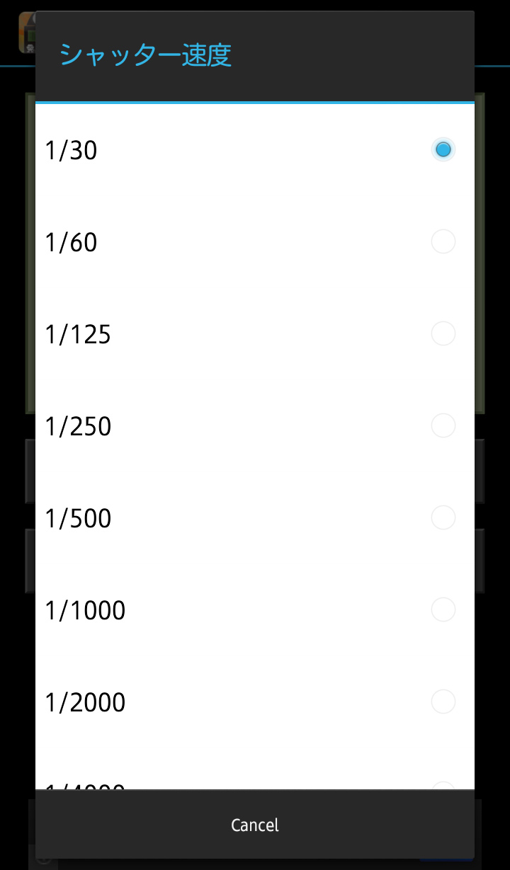 「ISO」を変更したい場合は、[ISO]ボタンをタップしましょう。[ISO]の設定画面が表示されますので、6・12・25・50・100・200・400・800・1600・3200・6400・12800の中から、お好みの数値を選択して、[OK]を押しましょう。メイン画面に戻り、F値、シャッタースピード(T)が改めて算出され、選択した「ISO」に合わせた値に変わります。絞り優先にしたい場合は[F]ボタンをタップ。[絞り]の設定画面が表示されますので、1.0・1.4・2.0・2.8・4.0・5.6・8.0・11.0・16.0・22.0・32.0の中からお好みの数値を選択しましょう。[OK]をタップするとメイン画面に戻り、シャッタースピード(T)が算出され値が変わります。シャッタースピードを優先したい場合は[T]ボタンをタップします。8.0・4.0・2.0・1.0・0.5・1/4・1/8・1/15・1/30・1/60・1/125・1/250・1/500・1/1000・1/2000・1/4000・1/8000・1/16000の中から、お好みのシャッタースピードの値を選択してください。[OK]をタップするとメイン画面に戻り、F値が算出され値が変わります。