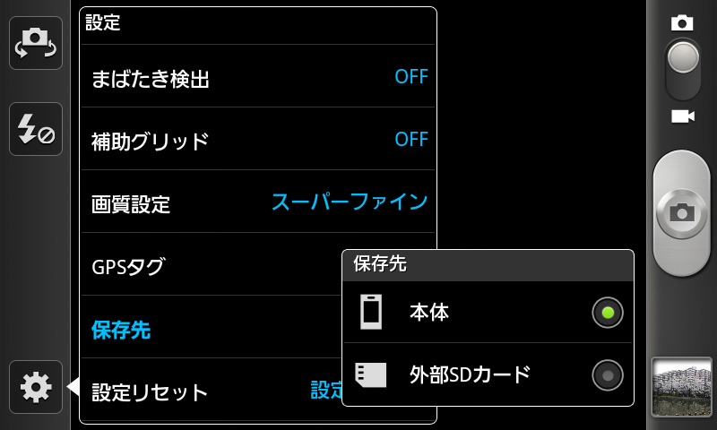 カメラから、撮った写真の保存先を「本体」と「microSD」と選択することもできます。「microSD」を選んでおけば、わざわざ移行しなくても済むのでラクですよね