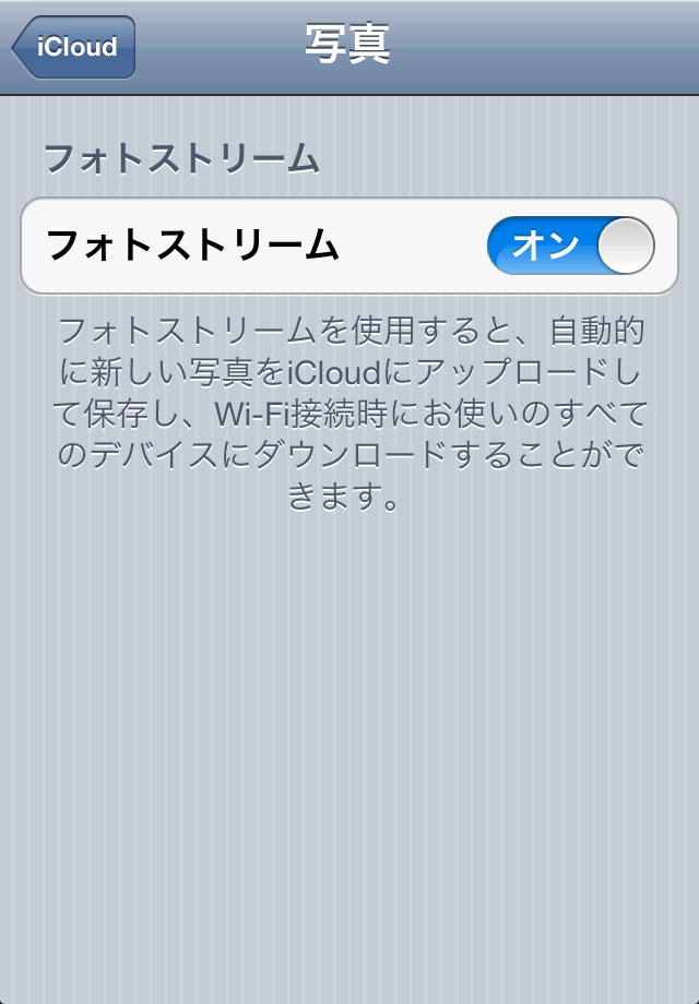 「iCloud」は、「設定」から「フォトストリーム」のオンオフを決められます。写真以外にアドレス帳やメールなども「iCloud」に保存する設定できます。※「iCloud」はiPhoneのみのサービスです