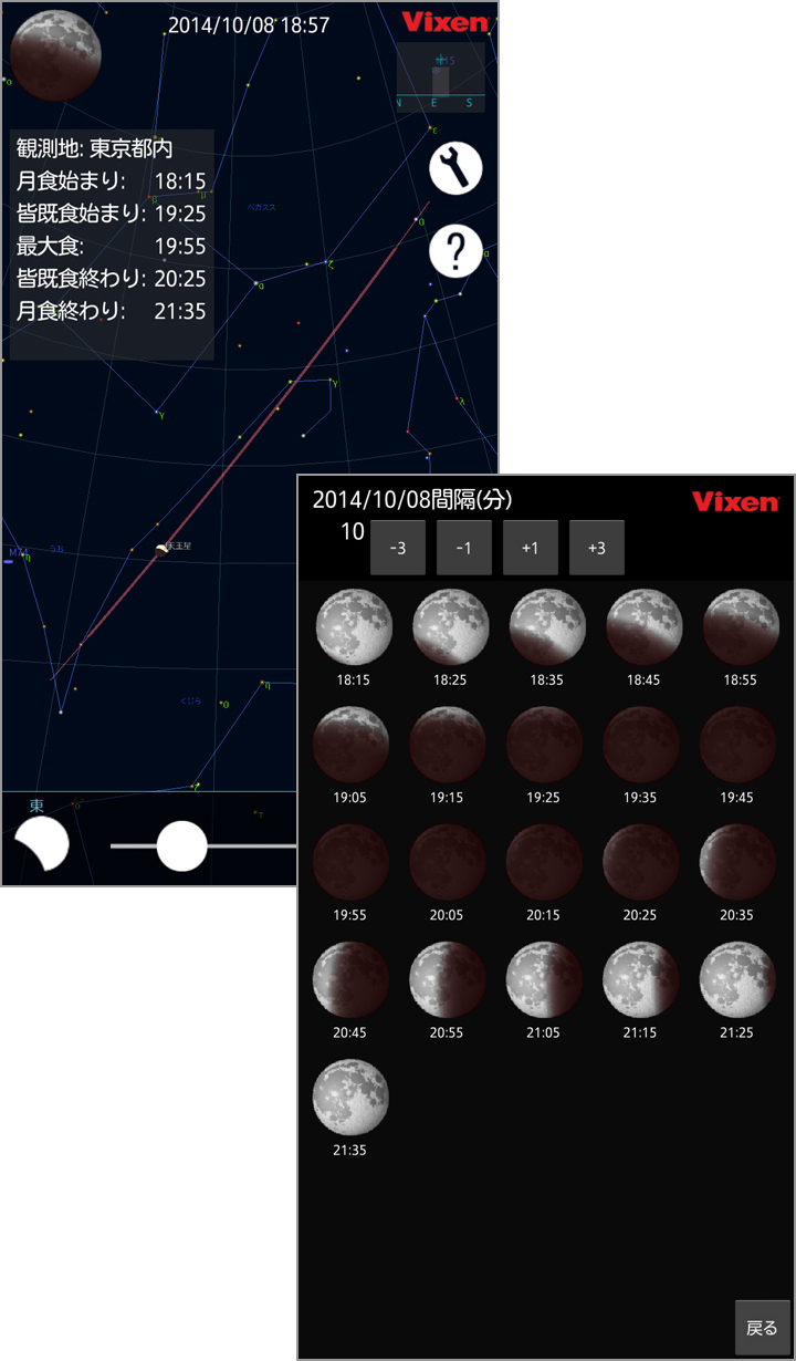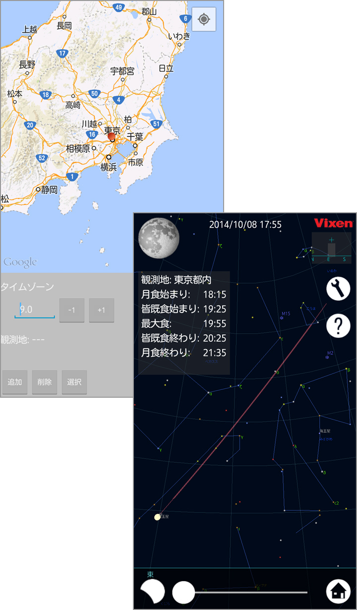 月食の時間や方向が、場所ごとに分かる!月の見え方や星図を確認できるアプリ「Moon Book」