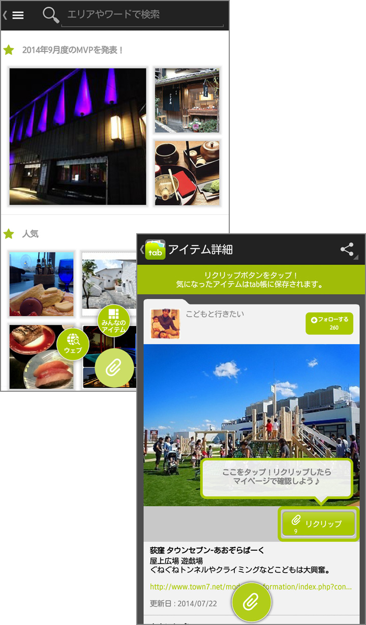 「行ってみたい!」「気になる!」をスクラップ♪お出かけが楽しくなるアプリ「tab」